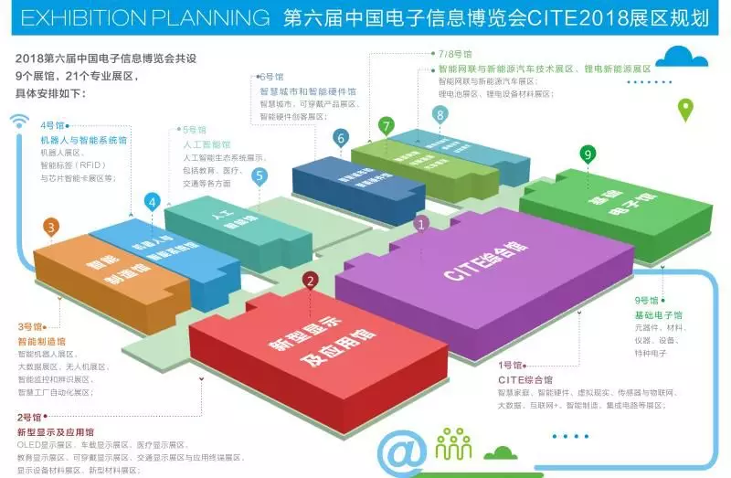 CITE2018超10万平方米的面积瞄准信息技术最新发展趋势,展示电子信息全产业链。包括:移动智能终端、智能机器人、人工智能、智慧家庭、智能硬件、虚拟现实与增强现实、传感器与物联网、大数据、互联网+、智能制造、新型显示、LED、集成电路、高端元器件、特种元器件、新能源汽车产业链、电子仪器与设备等。其中1号馆:CITE综合馆,2号馆:新型显示及应用馆,3号馆:智能制造馆。