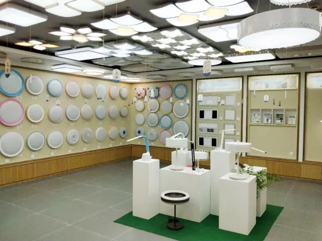 木林森照明常州家居旗舰店展厅装修风格和环境装饰采用简约时尚风格,在店面形象细节作了升级改造,更加符合现代年轻人的审美观念。深灰色地砖代替以往的木纹地板,更加大气简洁,明显突出灯具的美感。吸顶灯墙面按照产品尺寸设计排列,更显整齐美观,也提高了墙面利用率。常州旗舰店崭新明亮的店面形象,使人眼前一亮,搭配经典美观的产品和舒适愉悦的店面氛围,令人赏心悦目。