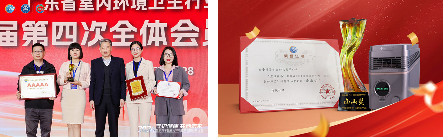 盛会之上,空净视界以科技创新及深厚的行业底蕴,不断深耕空净领域,其自主研发的负离子治疗仪斩获本届“南山奖”,同时荣获2024年度“诚信、品牌、质量、管理、服务”AAAAA企业、“行业突出贡献奖”两大奖项,彰显了其在多维度上的卓越表现! 这不仅是对空净视界在空气健康领域深耕细作的肯定,更是对其积极承担社会责任、致力于提升国民健康水平的广泛赞誉。